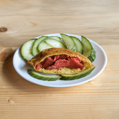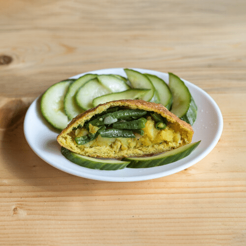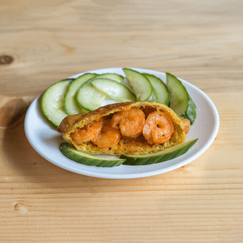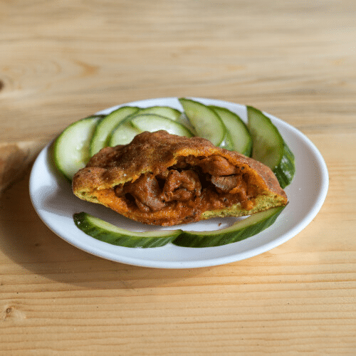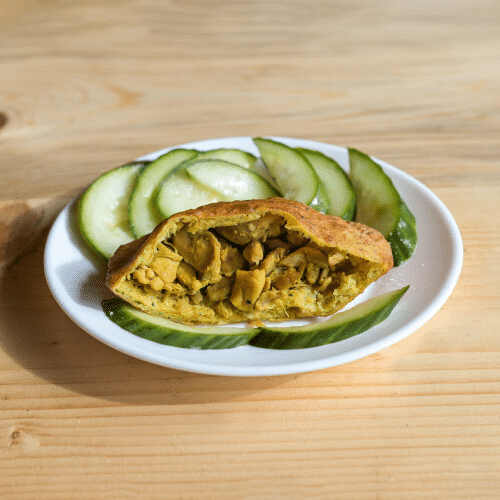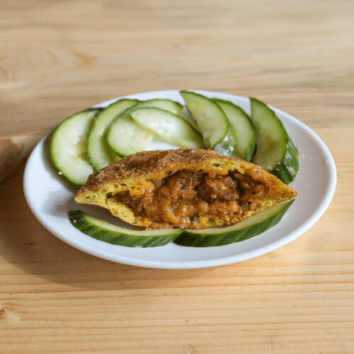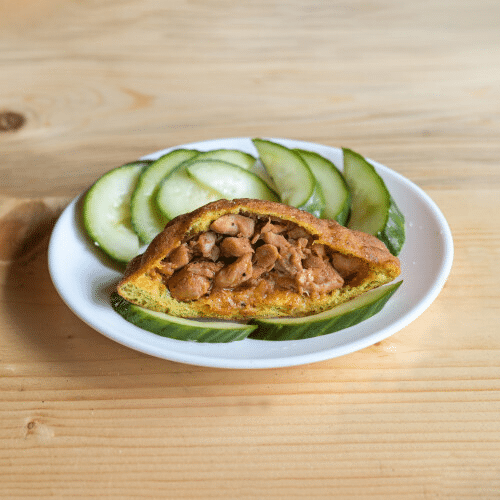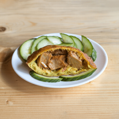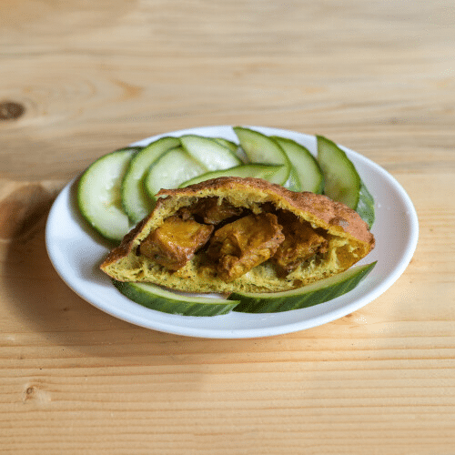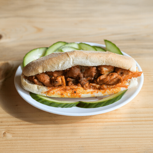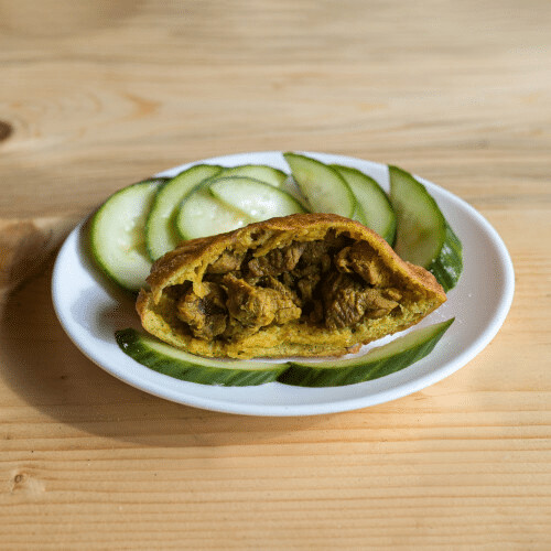 Kies uit: Ja, met komkommer, Nee, zonder komkommer, Ja, met sambal, Nee, zonder sambal, Extra komkommer, Extra sambal